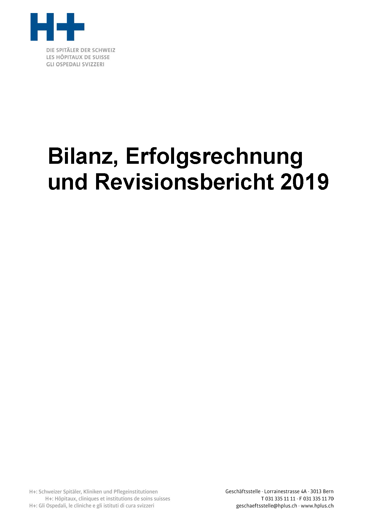 H+ schliesst das Berichtsjahr 2019 mit einem Jahresgewinn von CHF 393 ab.